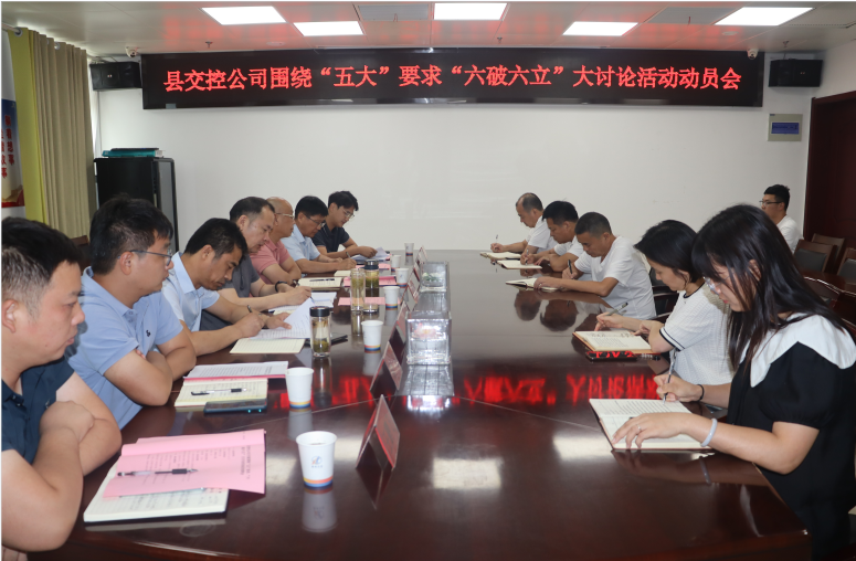 8月18日,縣交控公司總經理王旭主持召開圍繞“五大”要求、“六破六立”大討論活動動員部署會,公司領導班子、各部室負責人參加會議。會議深入學習了《關于在全縣開展圍繞“五大”要求、“六破六立”大討論活動的實施方案》、省委主要領導主題教育專題黨課報告